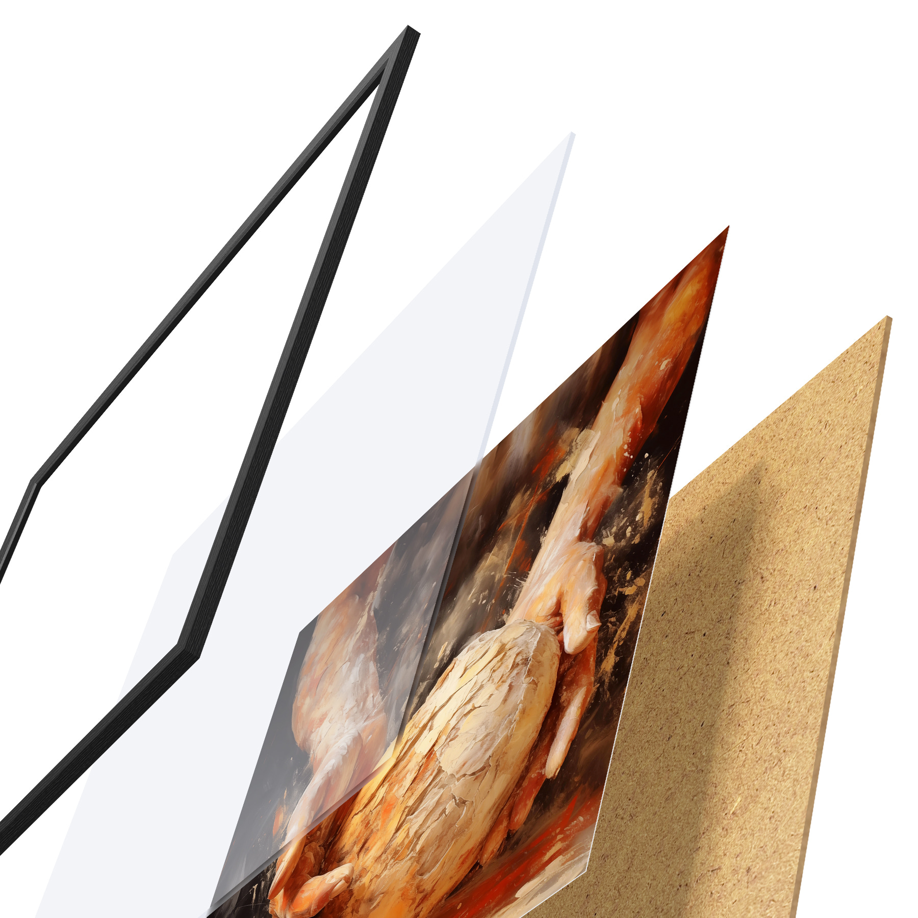 El póster consta de marco, plexiglás, imagen impresa y soporte de aglomerado. El póster puede colgarse inmediatamente en la pared gracias a los soportes de la parte posterior.