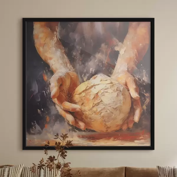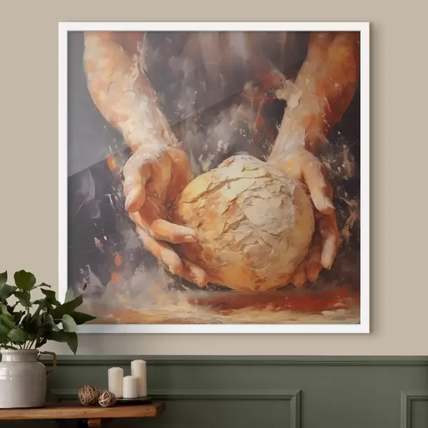Poster Manos de panadero sujetando la masa, imitación de una pintura al óleo f40095