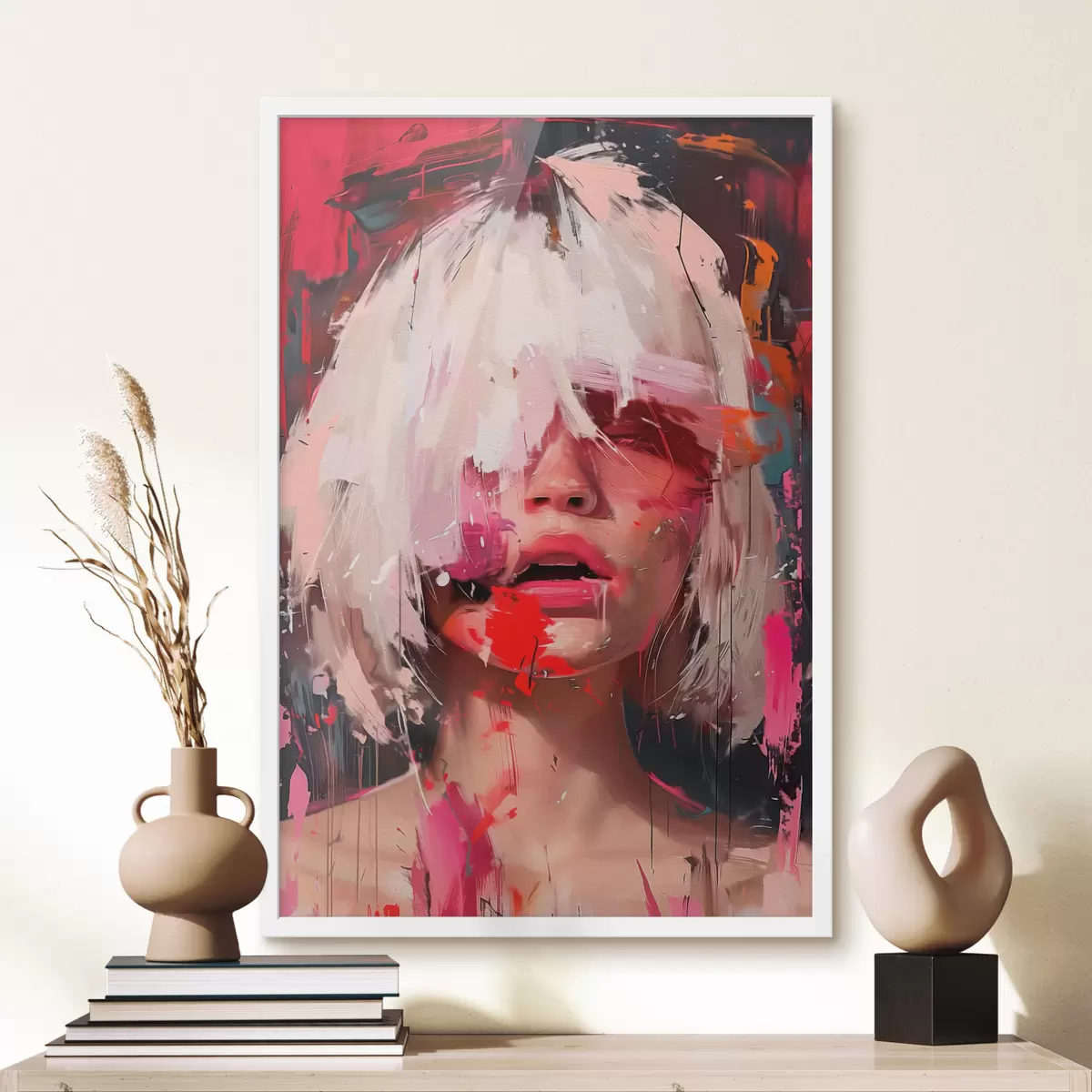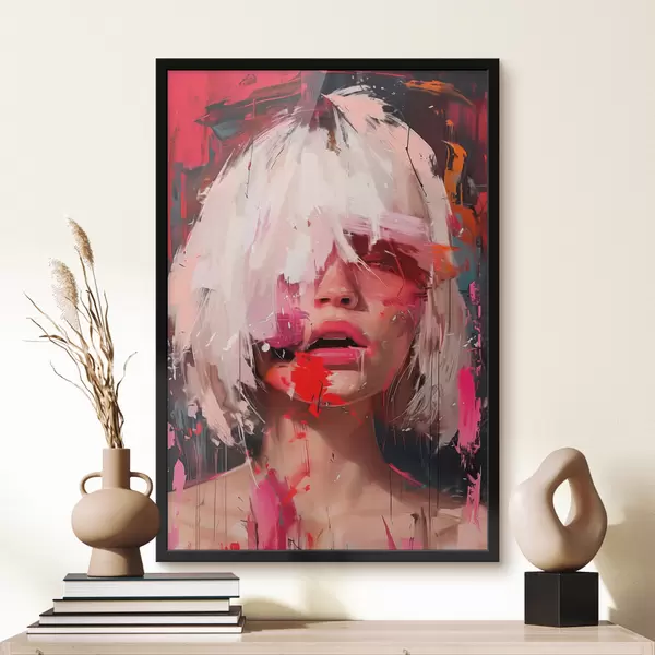 Poster Chica rubia con un bob cuadrado y pintura de colores f40110