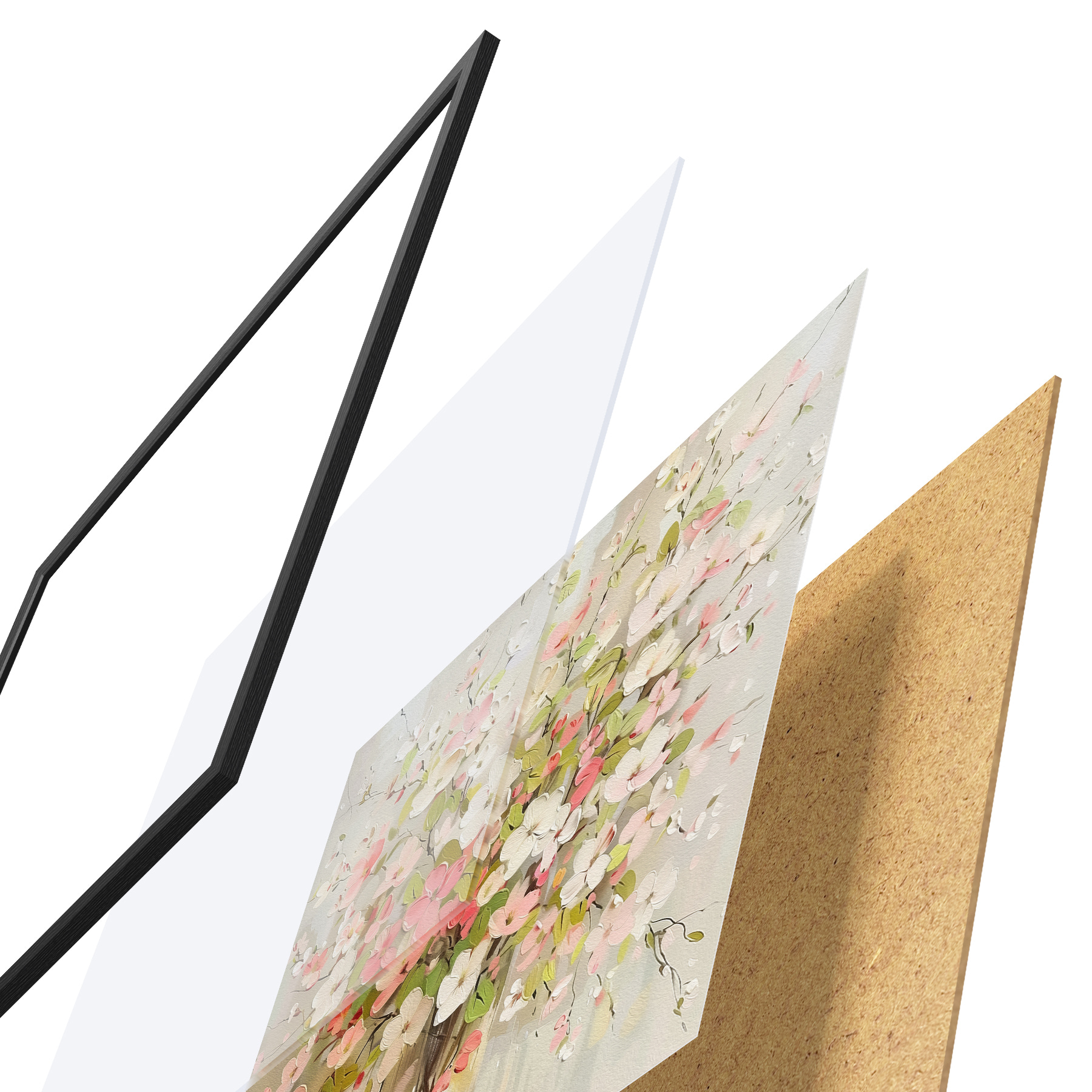 El póster consta de marco, plexiglás, imagen impresa y soporte de aglomerado. El póster puede colgarse inmediatamente en la pared gracias a los soportes de la parte posterior.