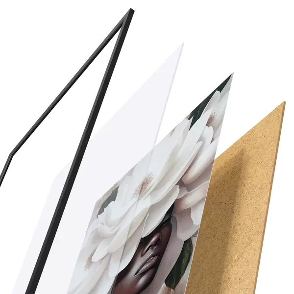 El póster consta de marco, plexiglás, imagen impresa y soporte de aglomerado. El póster puede colgarse inmediatamente en la pared gracias a los soportes de la parte posterior.