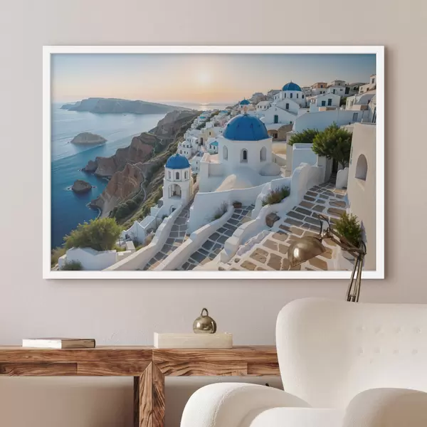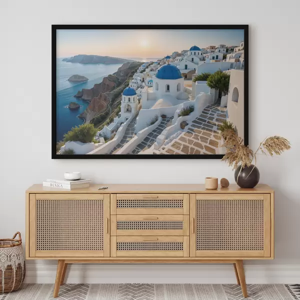 Poster La isla de Santorini, Grecia. La ciudad está construida sobre una ladera con vistas al mar Egeo. Nr f40160