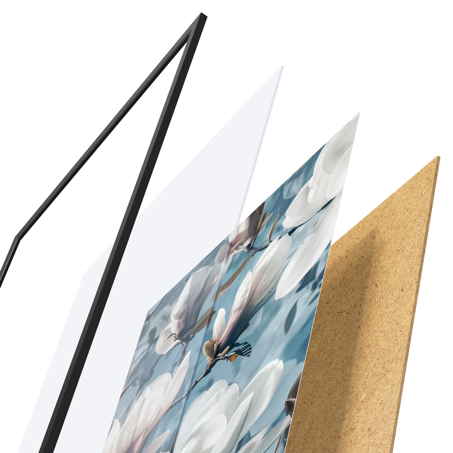 El póster consta de marco, plexiglás, imagen impresa y soporte de aglomerado. El póster puede colgarse inmediatamente en la pared gracias a los soportes de la parte posterior.