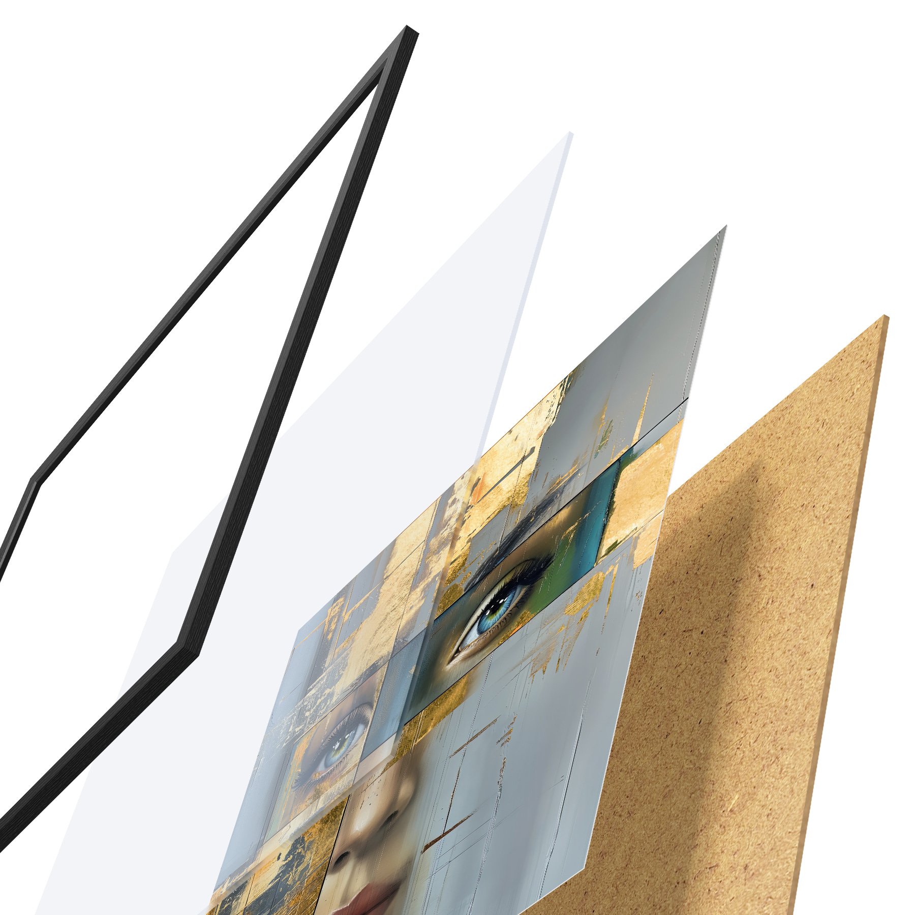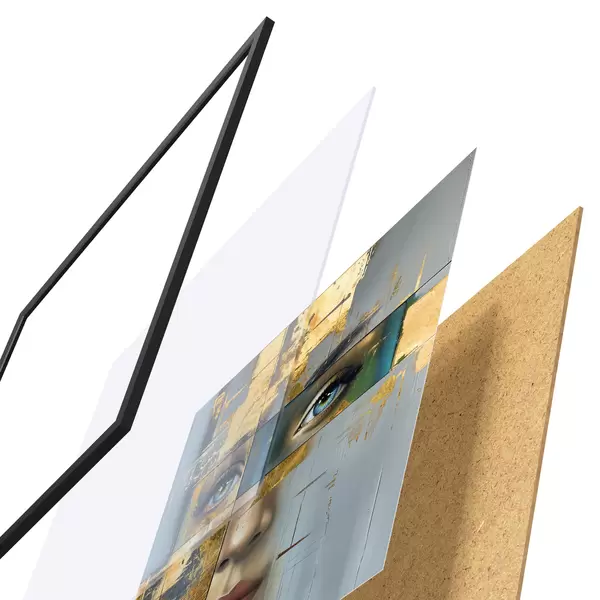 El póster consta de marco, plexiglás, imagen impresa y soporte de aglomerado. El póster puede colgarse inmediatamente en la pared gracias a los soportes de la parte posterior.