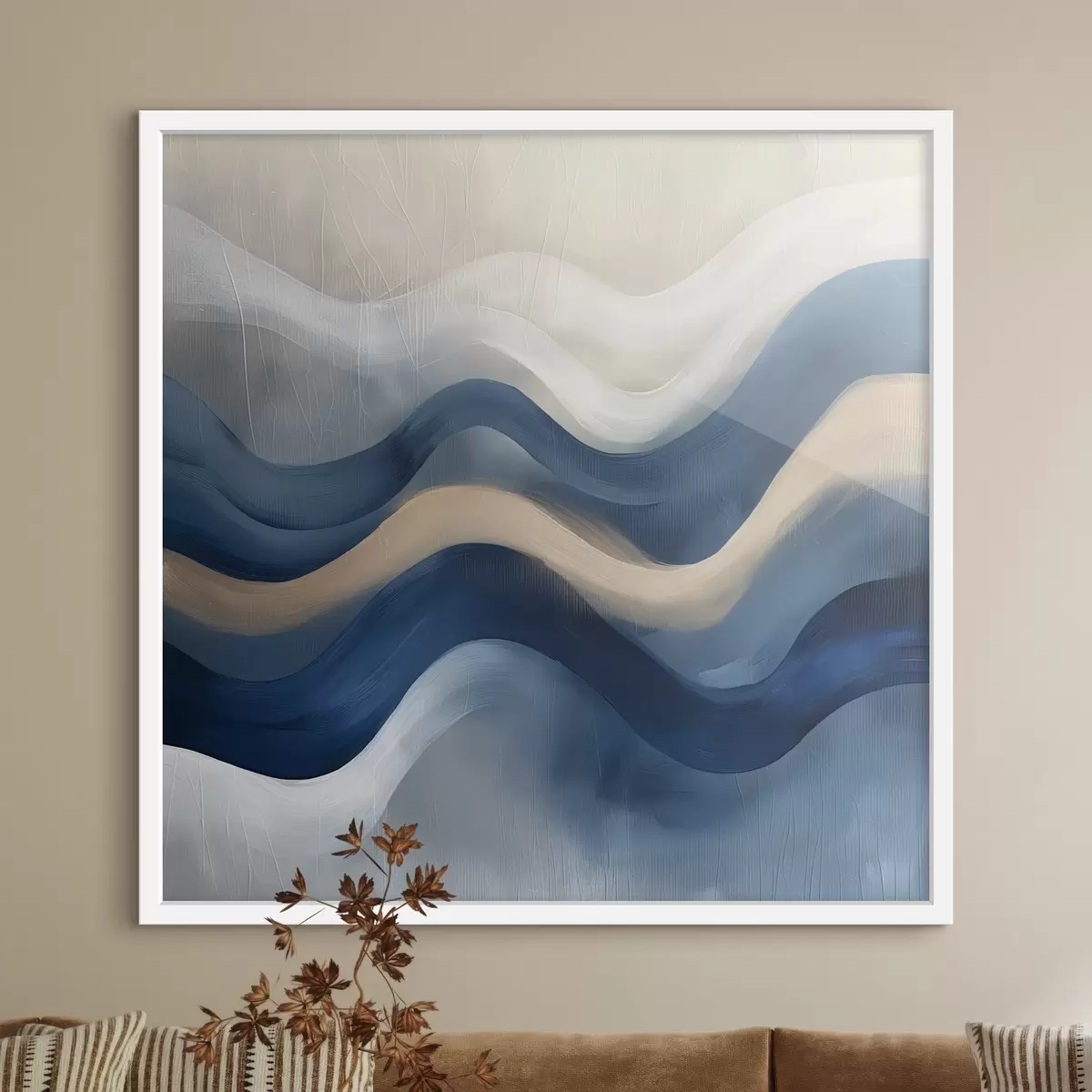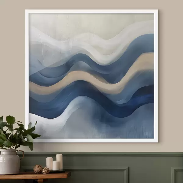 Poster líneas azules y beige f40242