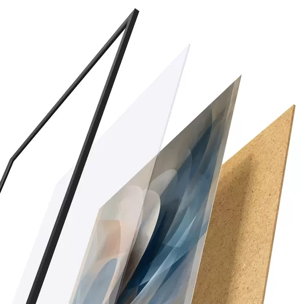 El póster consta de marco, plexiglás, imagen impresa y soporte de aglomerado. El póster puede colgarse inmediatamente en la pared gracias a los soportes de la parte posterior.