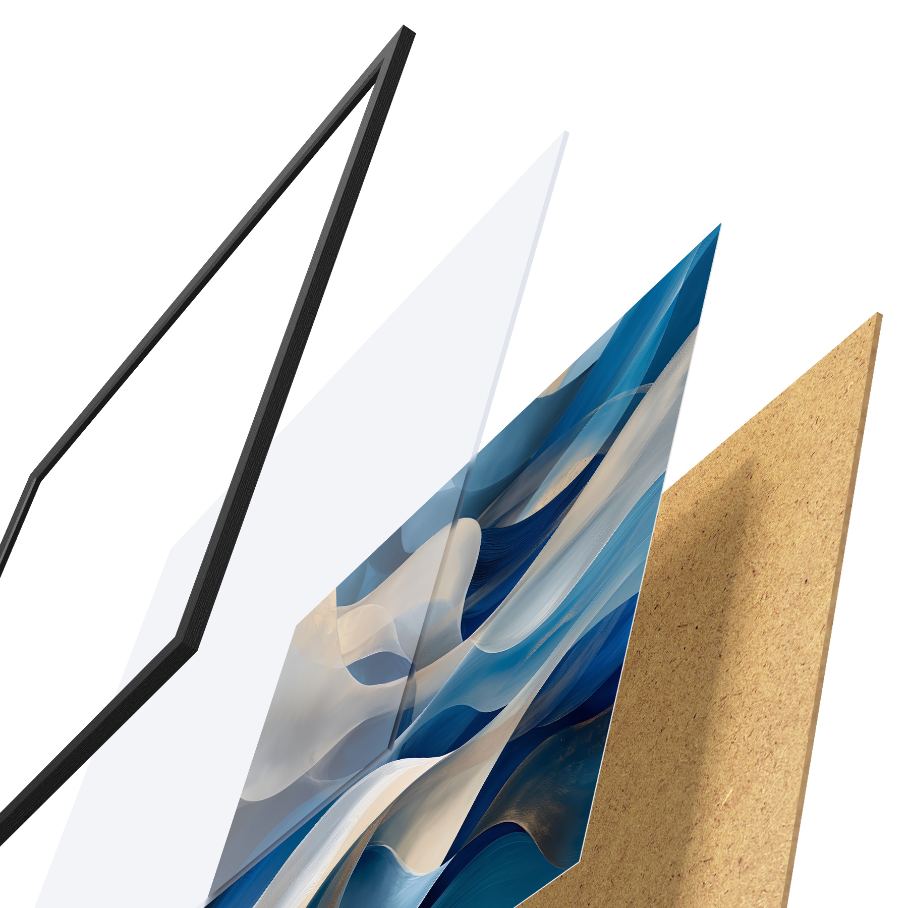 El póster consta de marco, plexiglás, imagen impresa y soporte de aglomerado. El póster puede colgarse inmediatamente en la pared gracias a los soportes de la parte posterior.