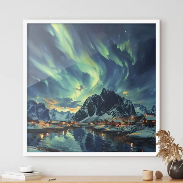 Poster Islas Lofoten, luces del norte, pueblo de invierno Nr f40299