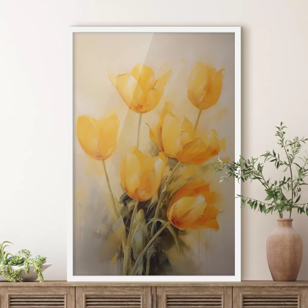 Poster Pintura al óleo imitación tulipanes amarillos Nr f40318