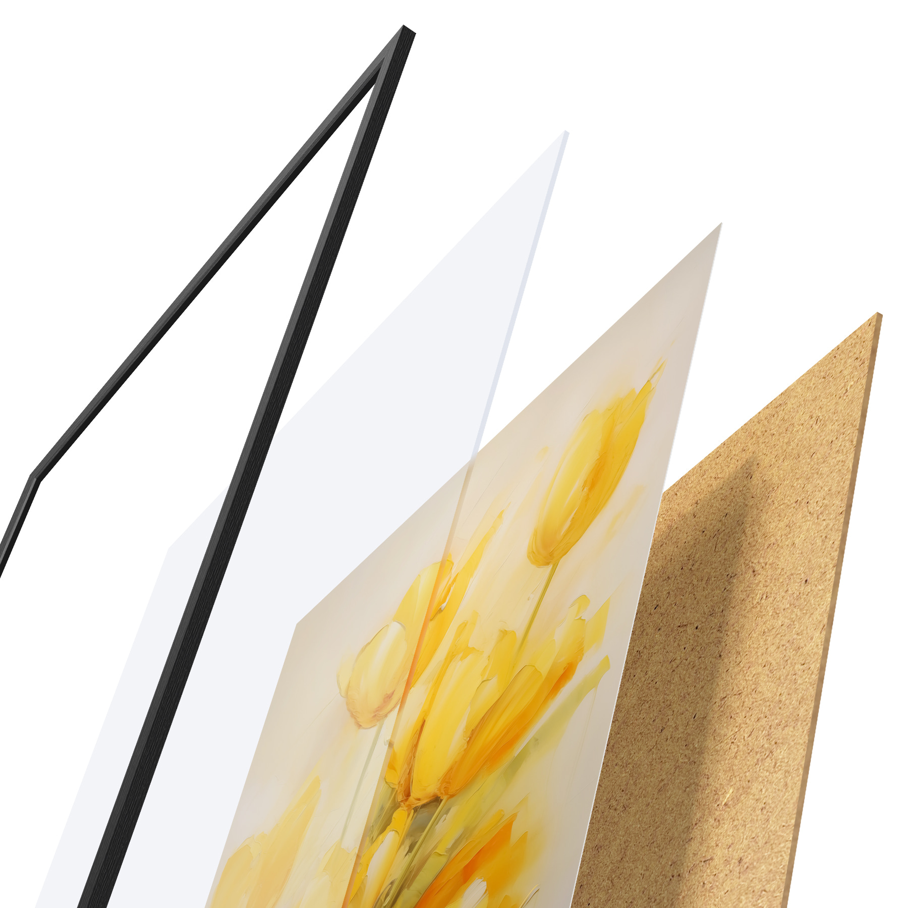 El póster consta de marco, plexiglás, imagen impresa y soporte de aglomerado. El póster puede colgarse inmediatamente en la pared gracias a los soportes de la parte posterior.