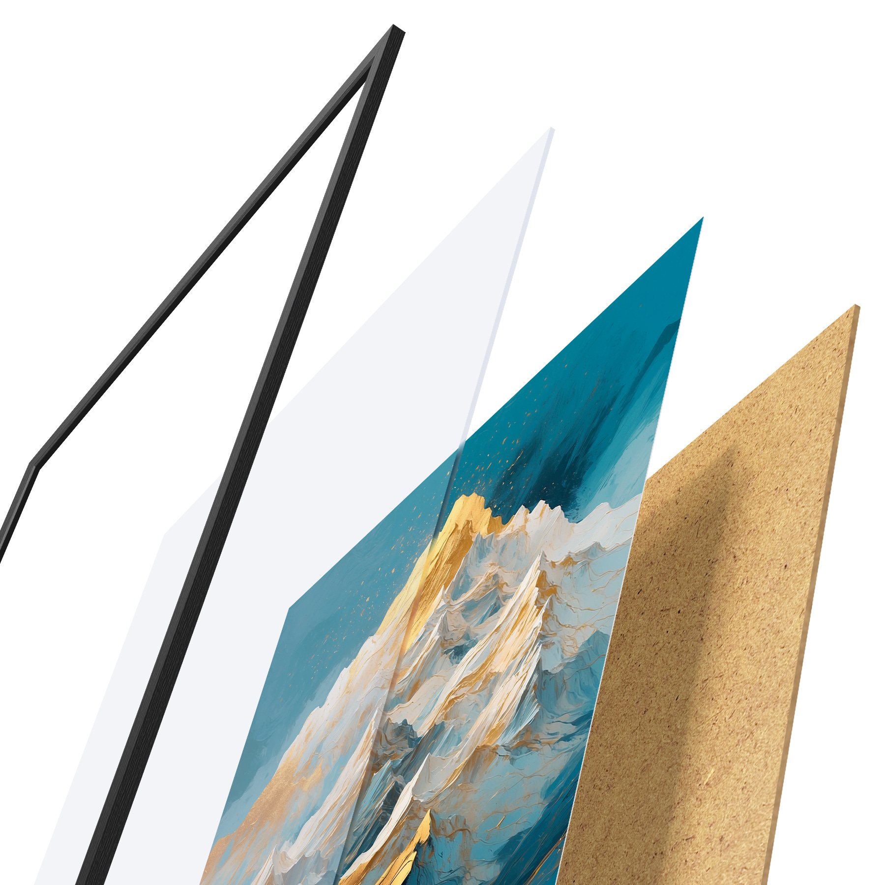 El póster consta de marco, plexiglás, imagen impresa y soporte de aglomerado. El póster puede colgarse inmediatamente en la pared gracias a los soportes de la parte posterior.