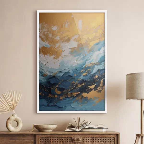 Poster Cuadro abstracto con colores azul y blanco. Nr f40328
