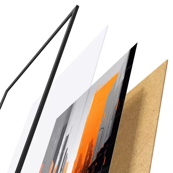 El póster consta de marco, plexiglás, imagen impresa y soporte de aglomerado. El póster puede colgarse inmediatamente en la pared gracias a los soportes de la parte posterior.