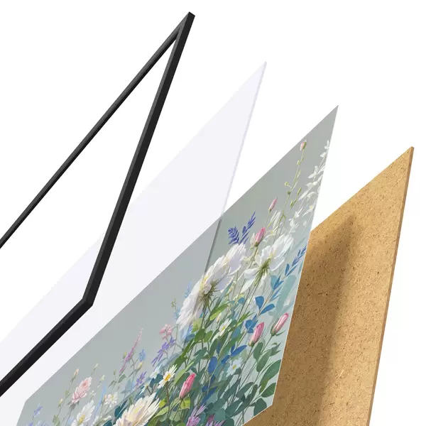 El póster consta de marco, plexiglás, imagen impresa y soporte de aglomerado. El póster puede colgarse inmediatamente en la pared gracias a los soportes de la parte posterior.