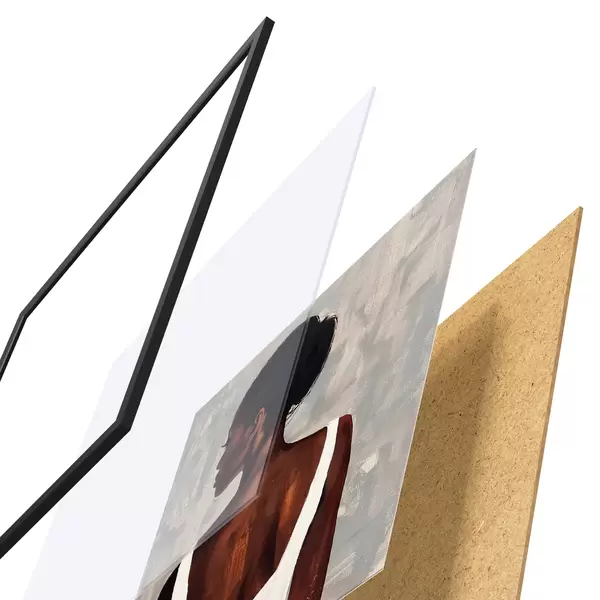El póster consta de marco, plexiglás, imagen impresa y soporte de aglomerado. El póster puede colgarse inmediatamente en la pared gracias a los soportes de la parte posterior.