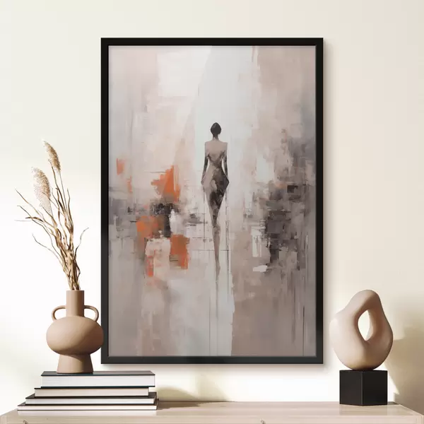 Poster Silueta abstracta de una mujer, imitación de abrasiones y pinceladas. f40485