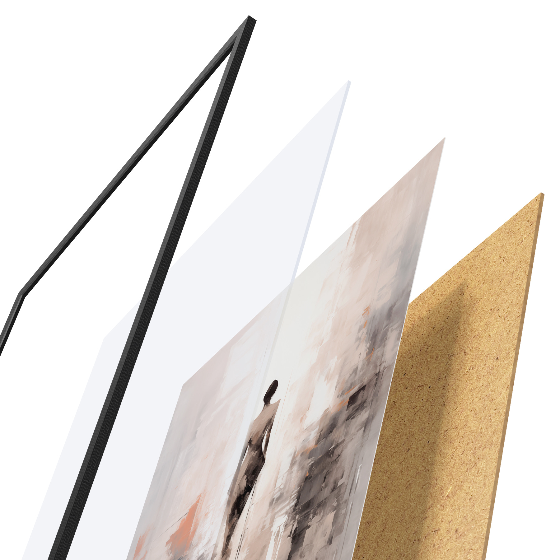 El póster consta de marco, plexiglás, imagen impresa y soporte de aglomerado. El póster puede colgarse inmediatamente en la pared gracias a los soportes de la parte posterior.