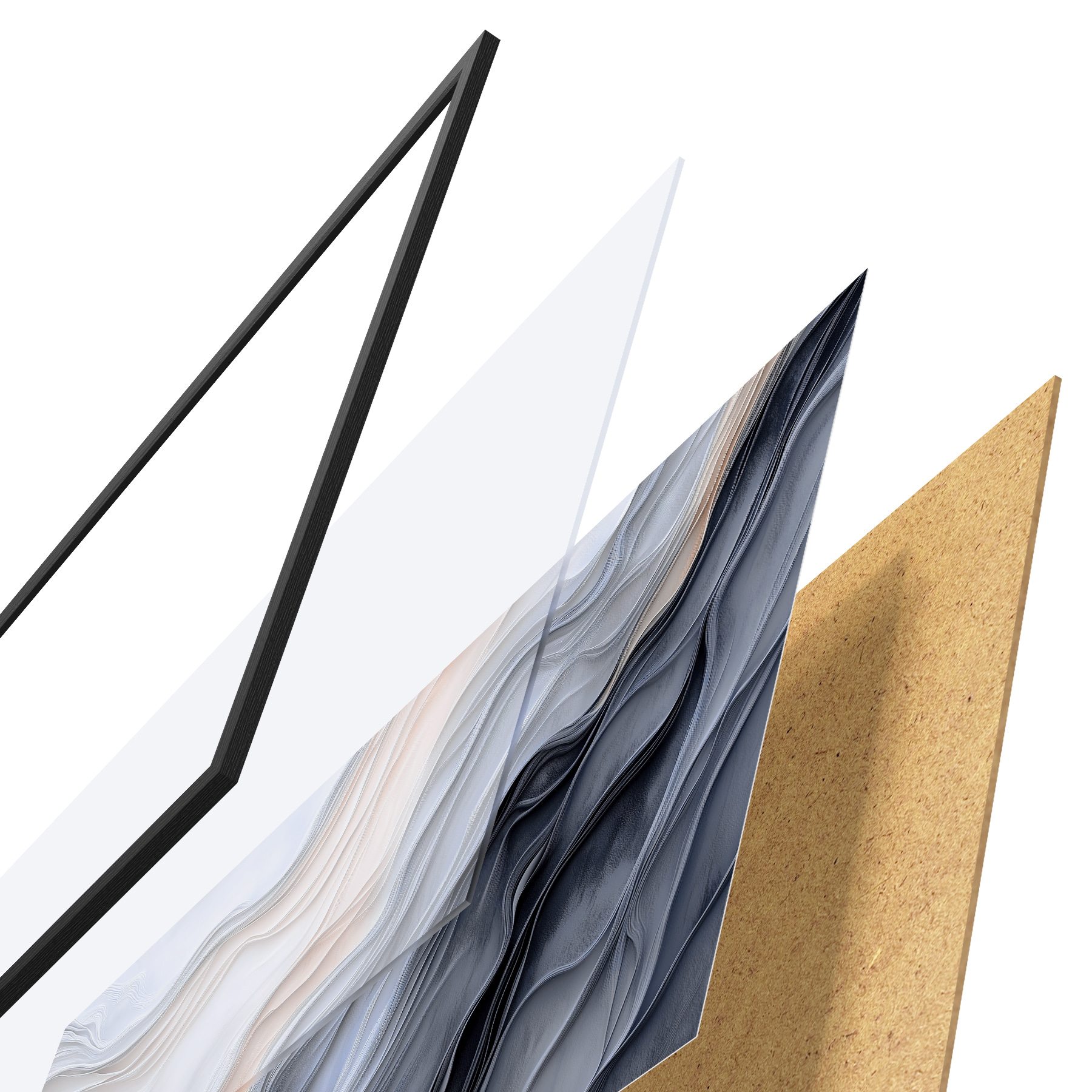 El póster consta de marco, plexiglás, imagen impresa y soporte de aglomerado. El póster puede colgarse inmediatamente en la pared gracias a los soportes de la parte posterior.