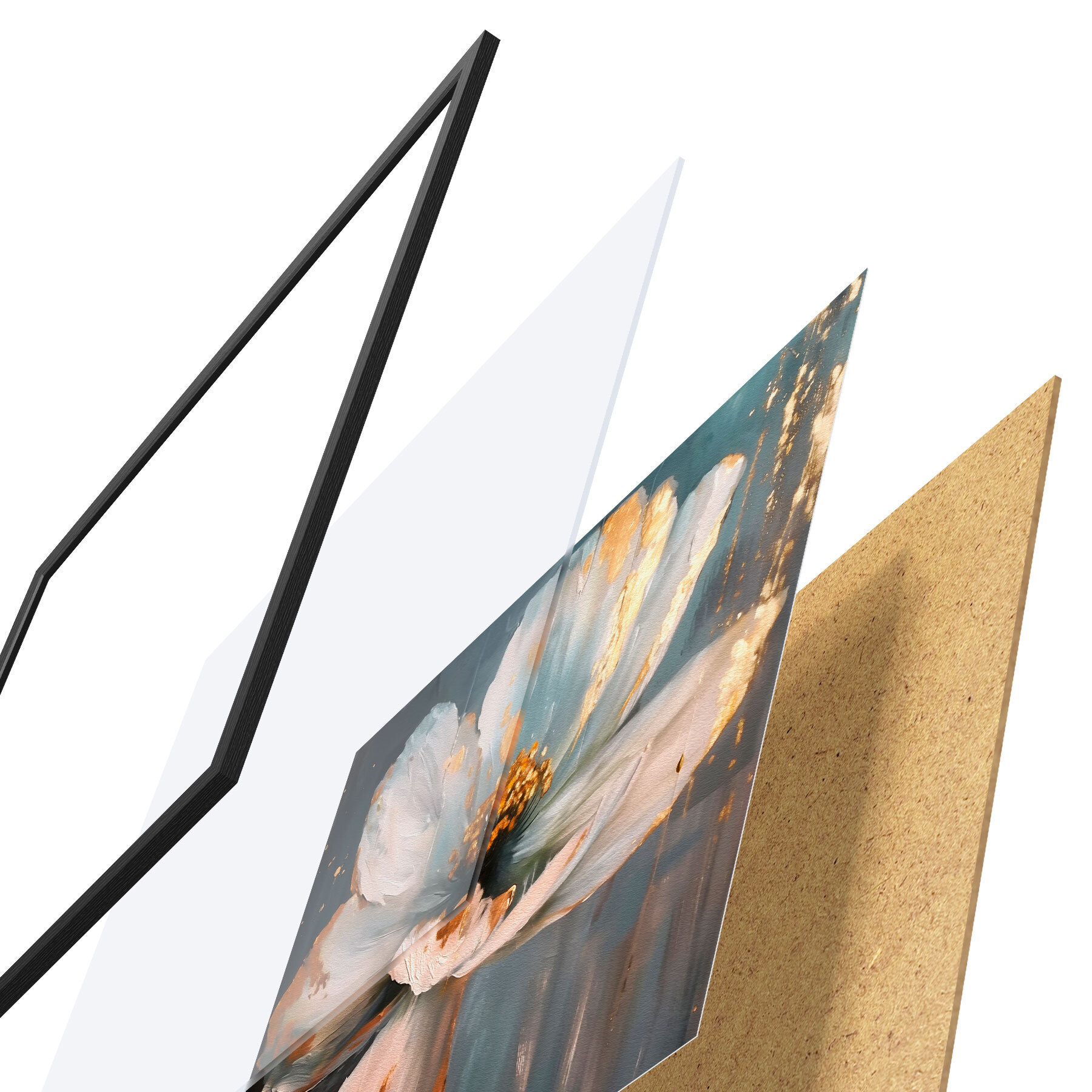 El póster consta de marco, plexiglás, imagen impresa y soporte de aglomerado. El póster puede colgarse inmediatamente en la pared gracias a los soportes de la parte posterior.