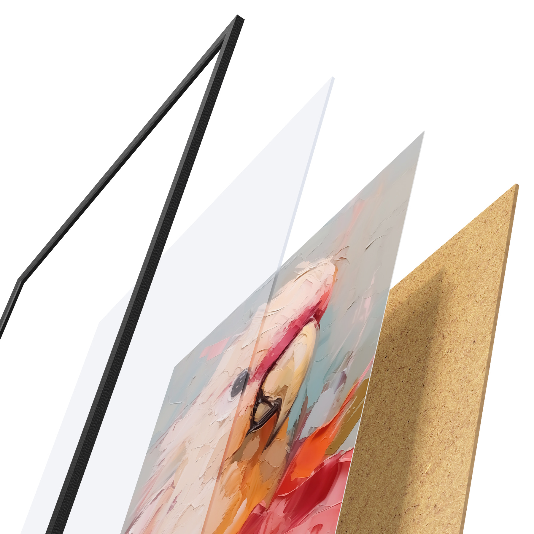 Poster Retrato de un loro cacatúa, color rosa, rojo, beige y gris. Nr f40525