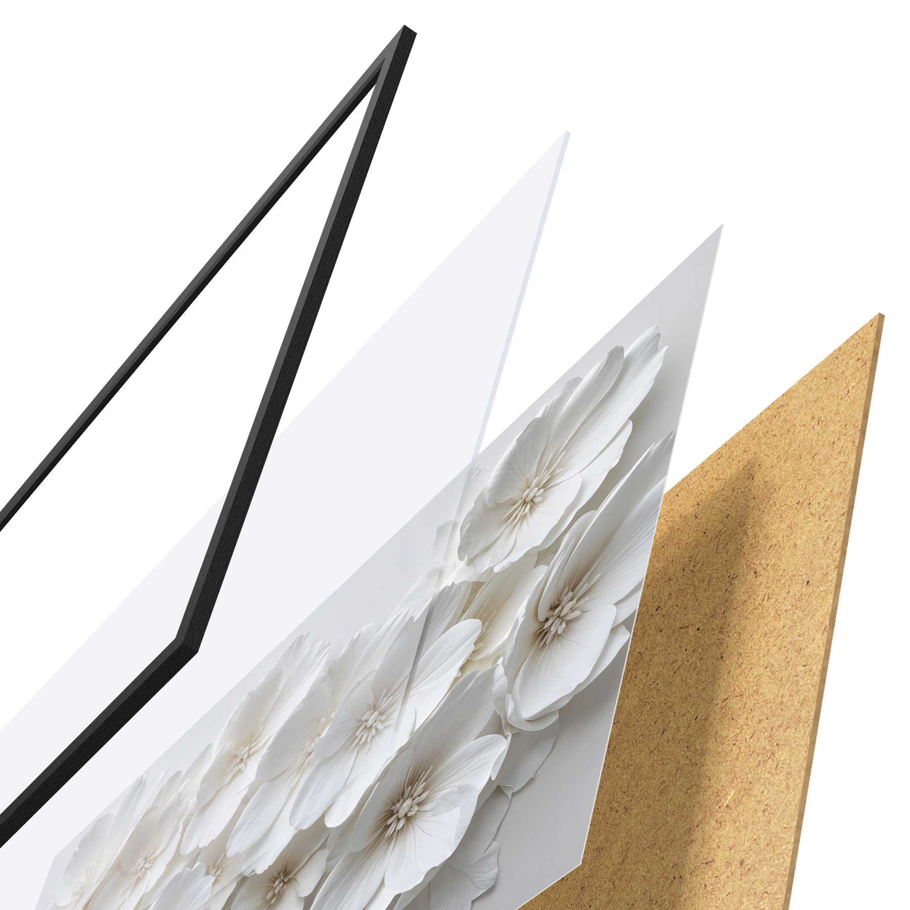 El póster consta de marco, plexiglás, imagen impresa y soporte de aglomerado. El póster puede colgarse inmediatamente en la pared gracias a los soportes de la parte posterior.