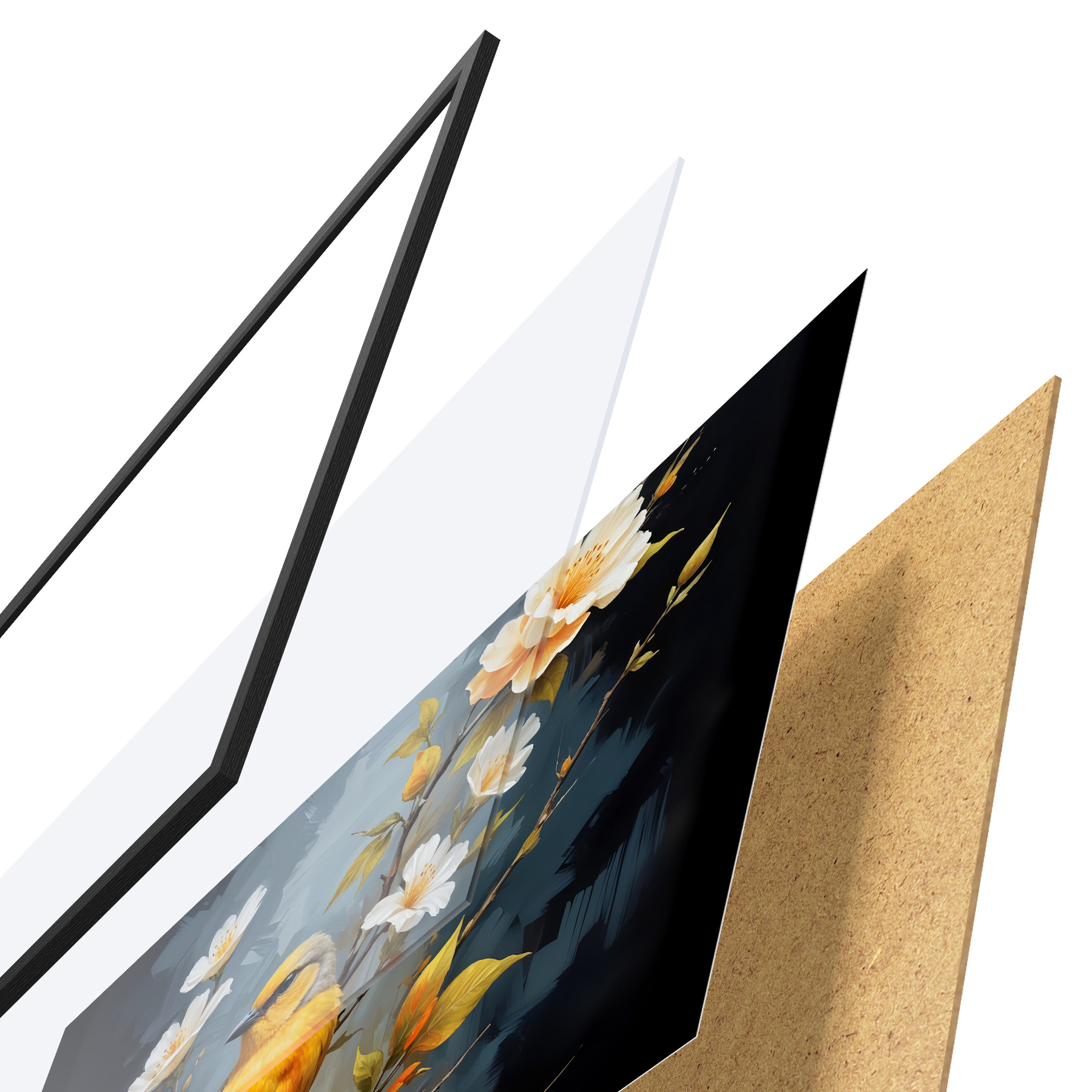 El póster consta de marco, plexiglás, imagen impresa y soporte de aglomerado. El póster puede colgarse inmediatamente en la pared gracias a los soportes de la parte posterior.