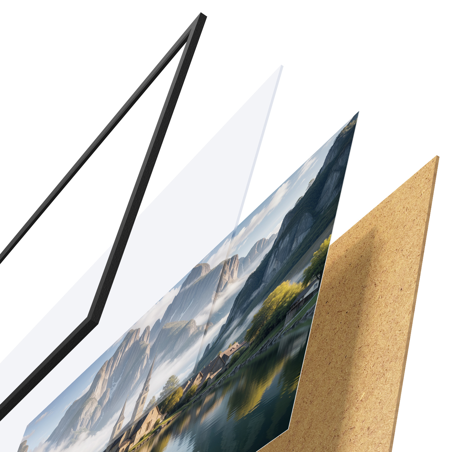 El póster consta de marco, plexiglás, imagen impresa y soporte de aglomerado. El póster puede colgarse inmediatamente en la pared gracias a los soportes de la parte posterior.