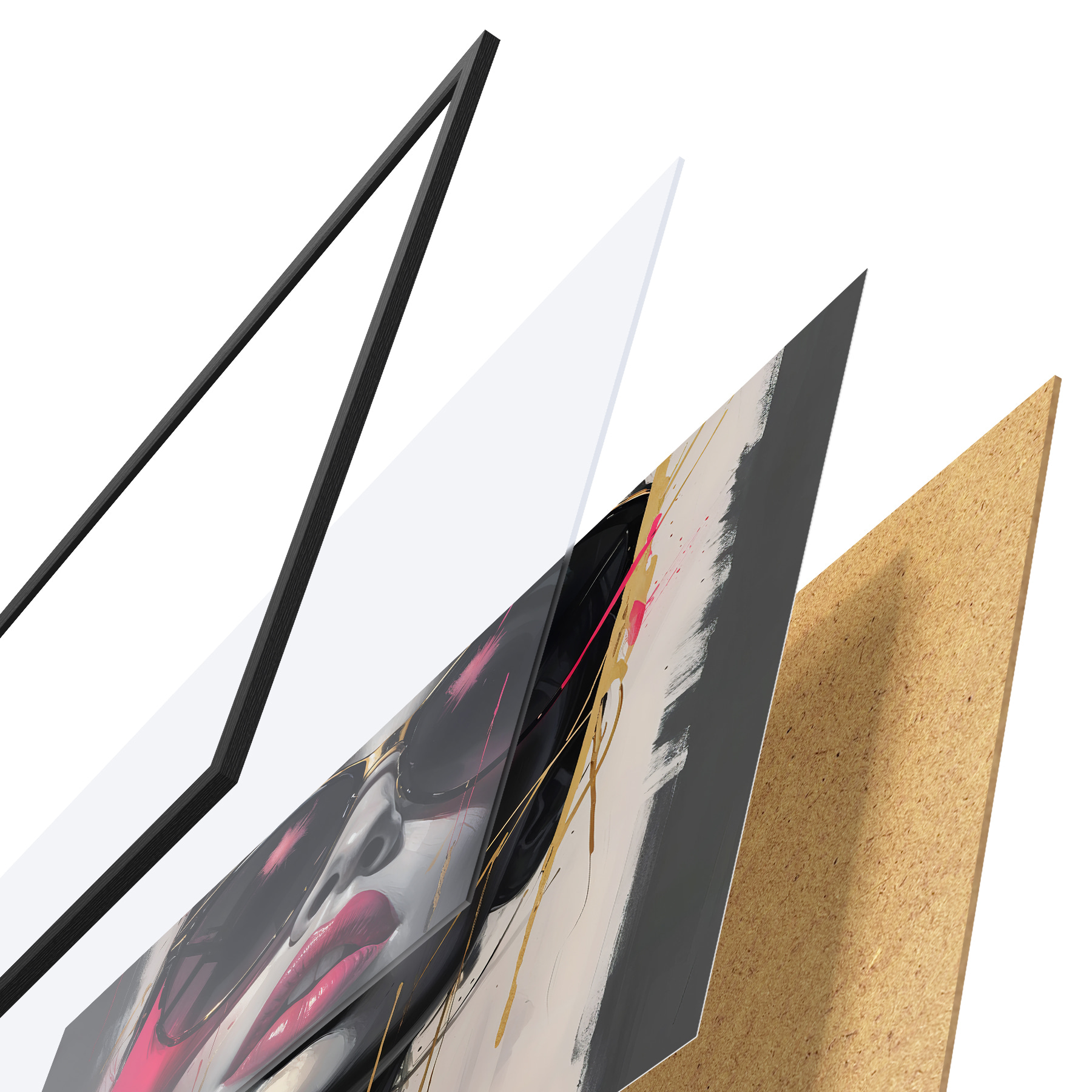 El póster consta de marco, plexiglás, imagen impresa y soporte de aglomerado. El póster puede colgarse inmediatamente en la pared gracias a los soportes de la parte posterior.