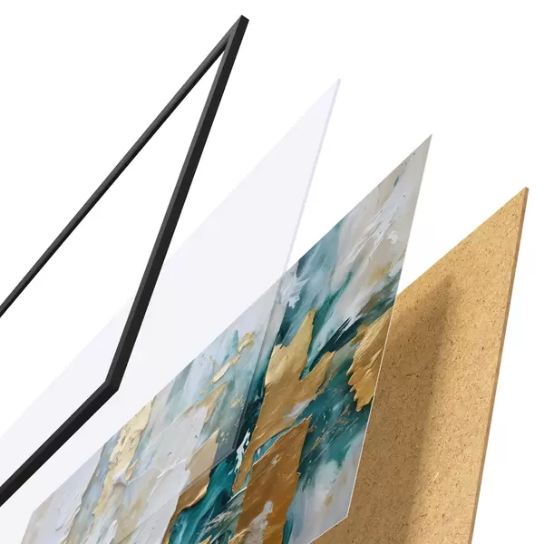 El póster consta de marco, plexiglás, imagen impresa y soporte de aglomerado. El póster puede colgarse inmediatamente en la pared gracias a los soportes de la parte posterior.