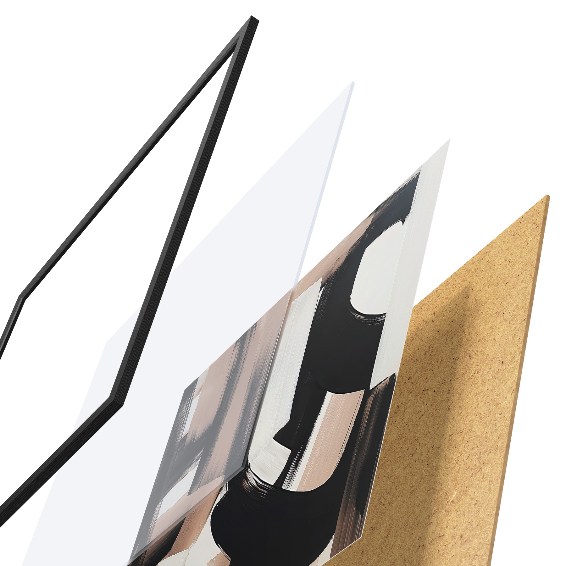 El póster consta de marco, plexiglás, imagen impresa y soporte de aglomerado. El póster puede colgarse inmediatamente en la pared gracias a los soportes de la parte posterior.