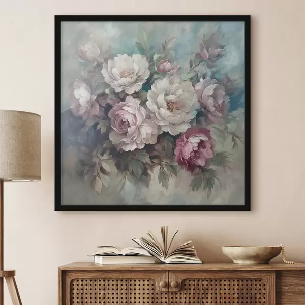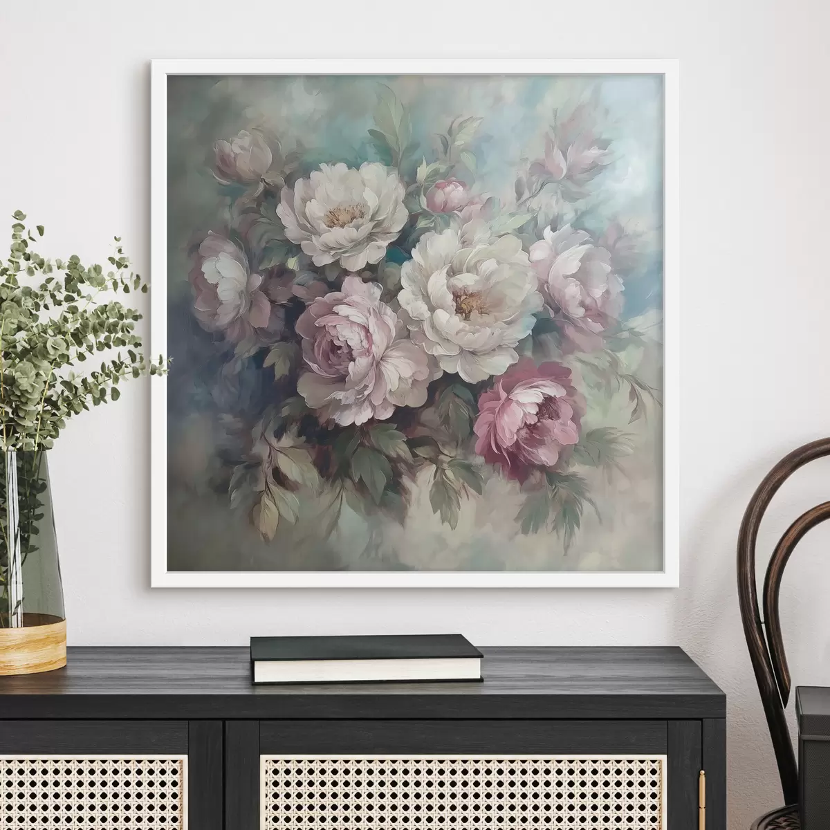 Poster Ramo de peonías rosas y blancas al óleo f40582