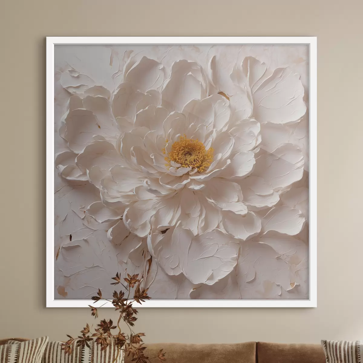 Poster Flor blanca al óleo sobre fondo blanco f40618