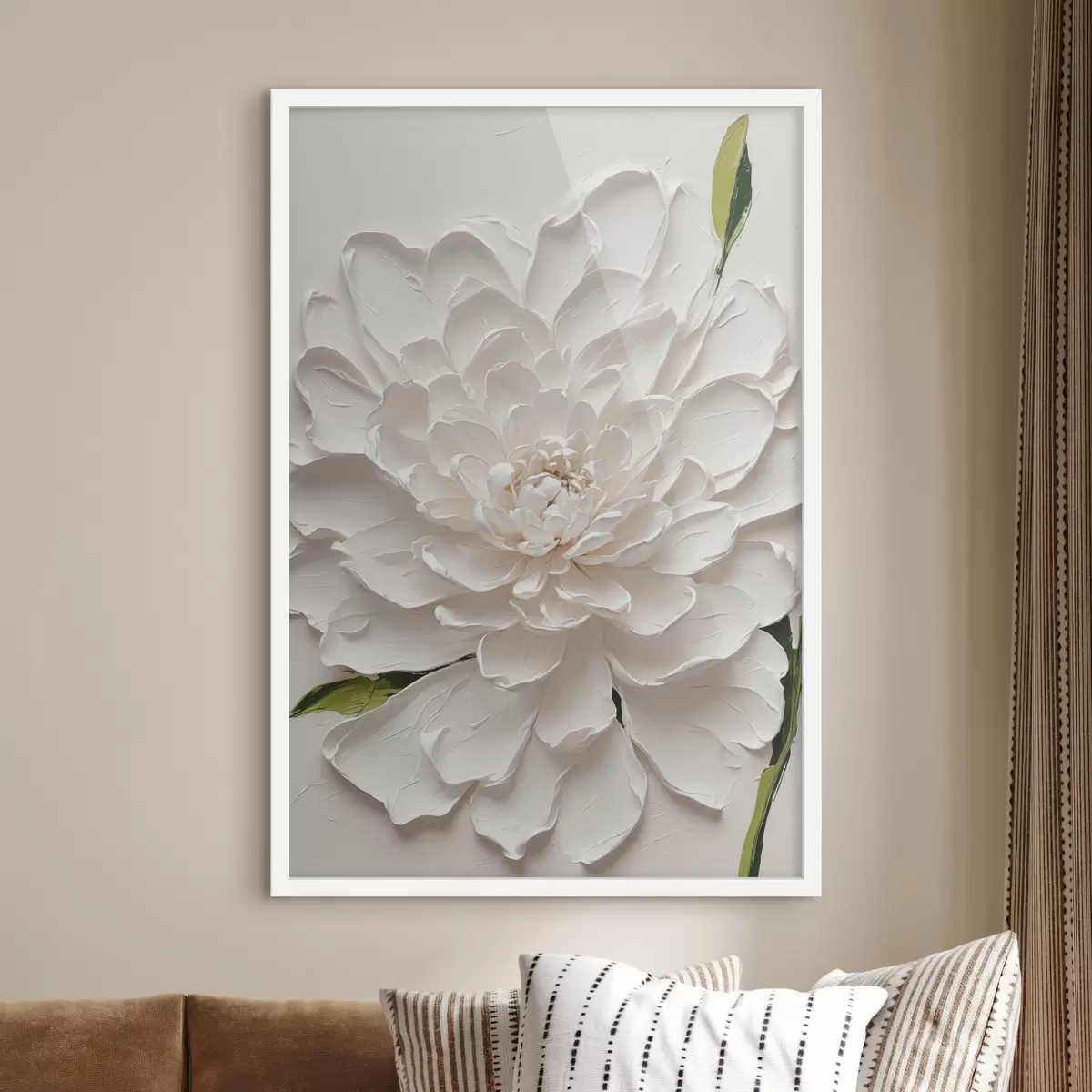 Poster Flor blanca en aceite con tallo verde Nr f40620