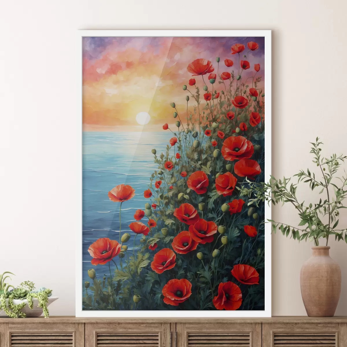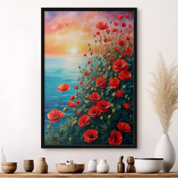 Poster Amapolas en flor sobre el fondo del mar f40637