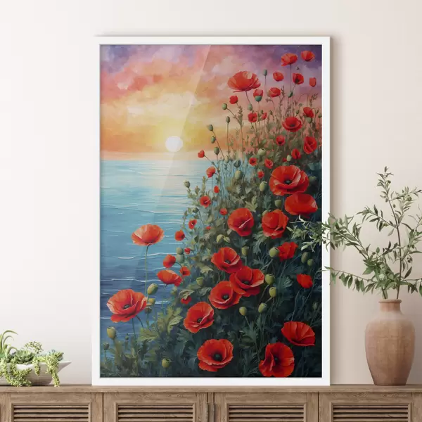 Poster Amapolas en flor sobre el fondo del mar Nr f40637