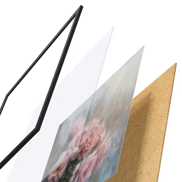 El póster consta de marco, plexiglás, imagen impresa y soporte de aglomerado. El póster puede colgarse inmediatamente en la pared gracias a los soportes de la parte posterior.