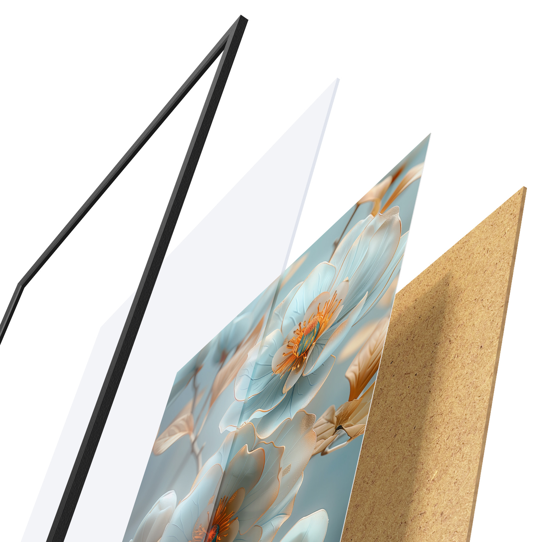 El póster consta de marco, plexiglás, imagen impresa y soporte de aglomerado. El póster puede colgarse inmediatamente en la pared gracias a los soportes de la parte posterior.