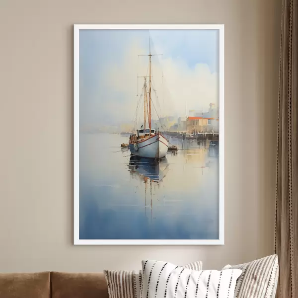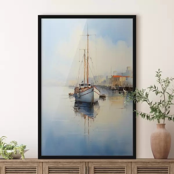Poster Barco de pesca en el muelle en el mar acuarela húmeda Nr f40688