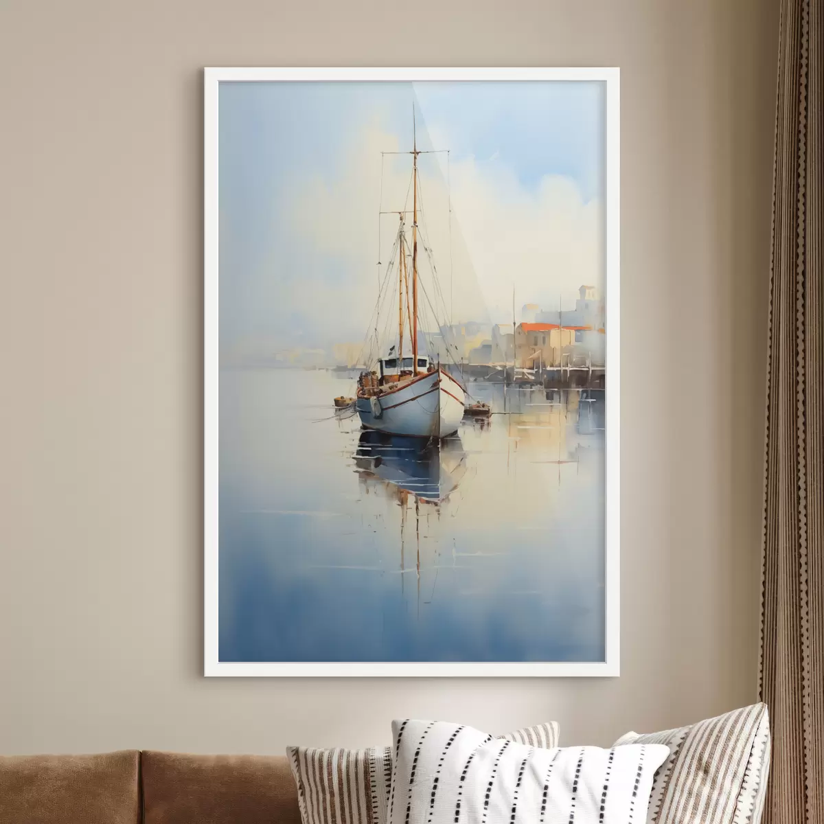 Poster Barco de pesca en el muelle en el mar acuarela húmeda f40688