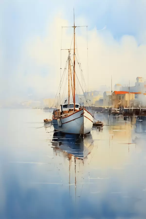 Poster Barco de pesca en el muelle en el mar acuarela húmeda Nr f40688