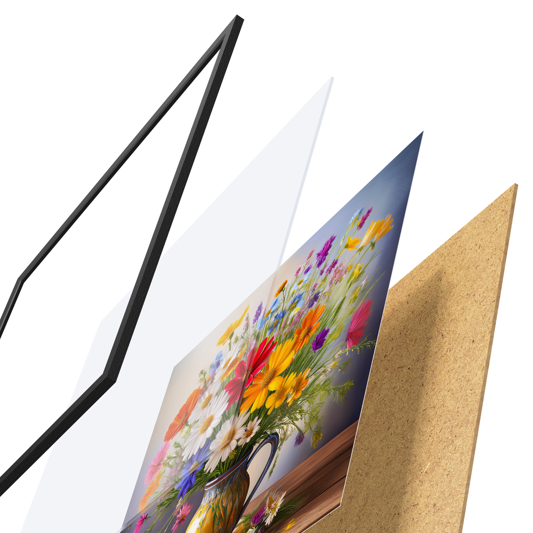 El póster consta de marco, plexiglás, imagen impresa y soporte de aglomerado. El póster puede colgarse inmediatamente en la pared gracias a los soportes de la parte posterior.