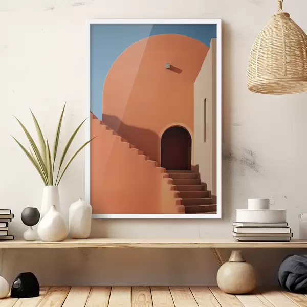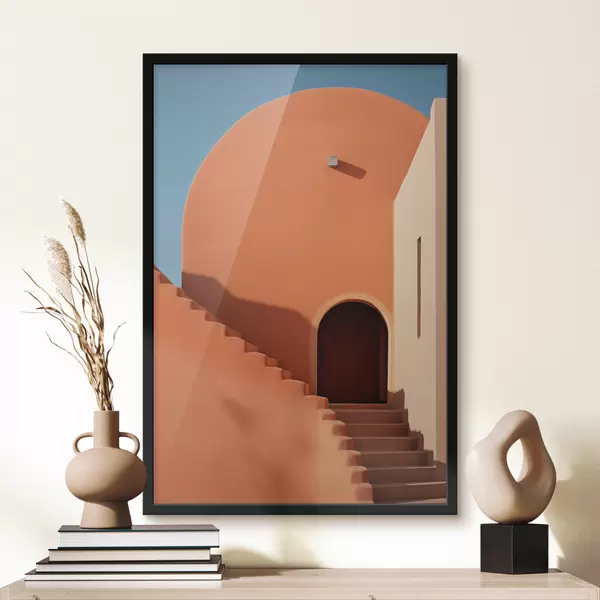 Poster Edificio de arquitectura minimalista con escalones, color azul, naranja Nr f40724