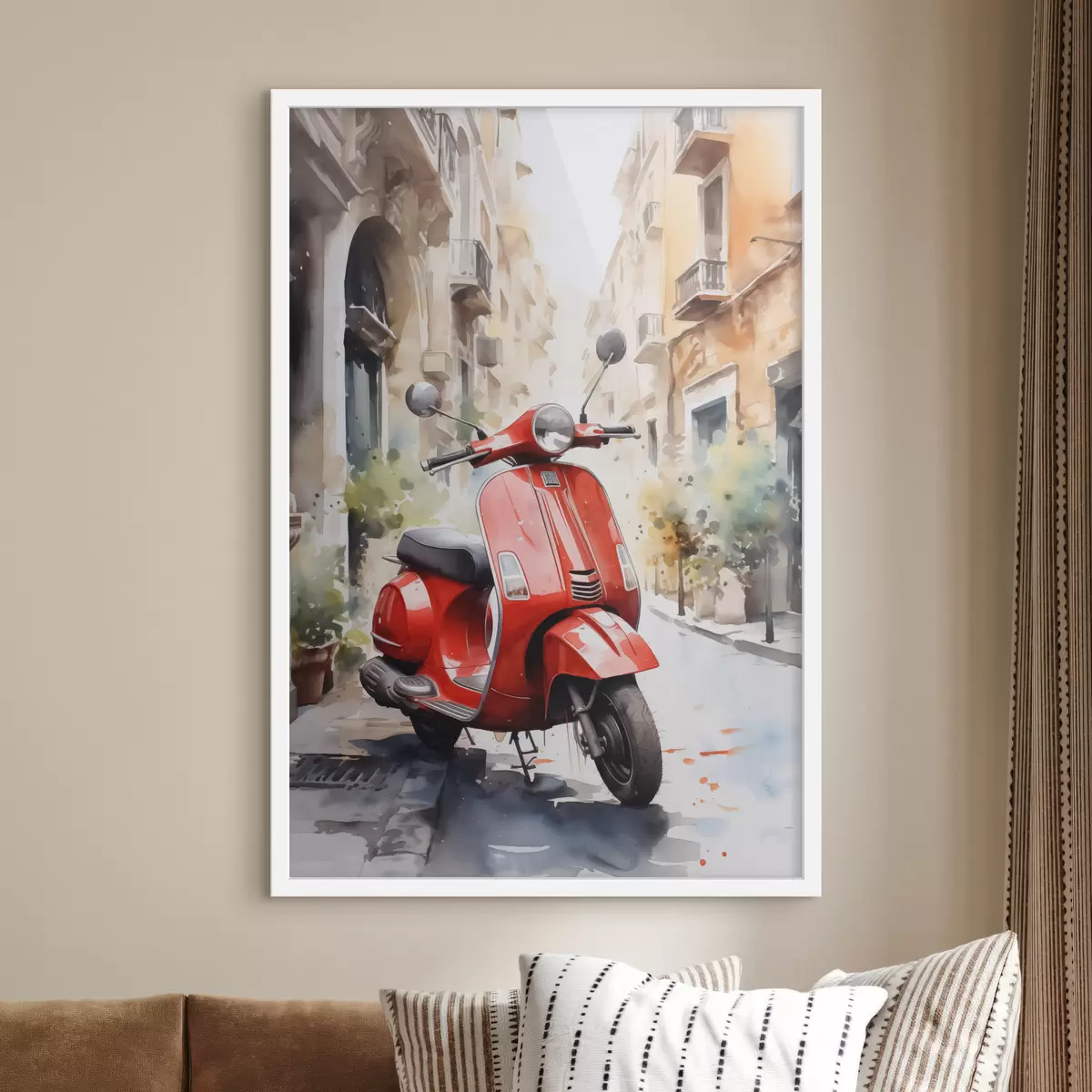 Poster Moto roja en la calle de Roma acuarela Nr f40728