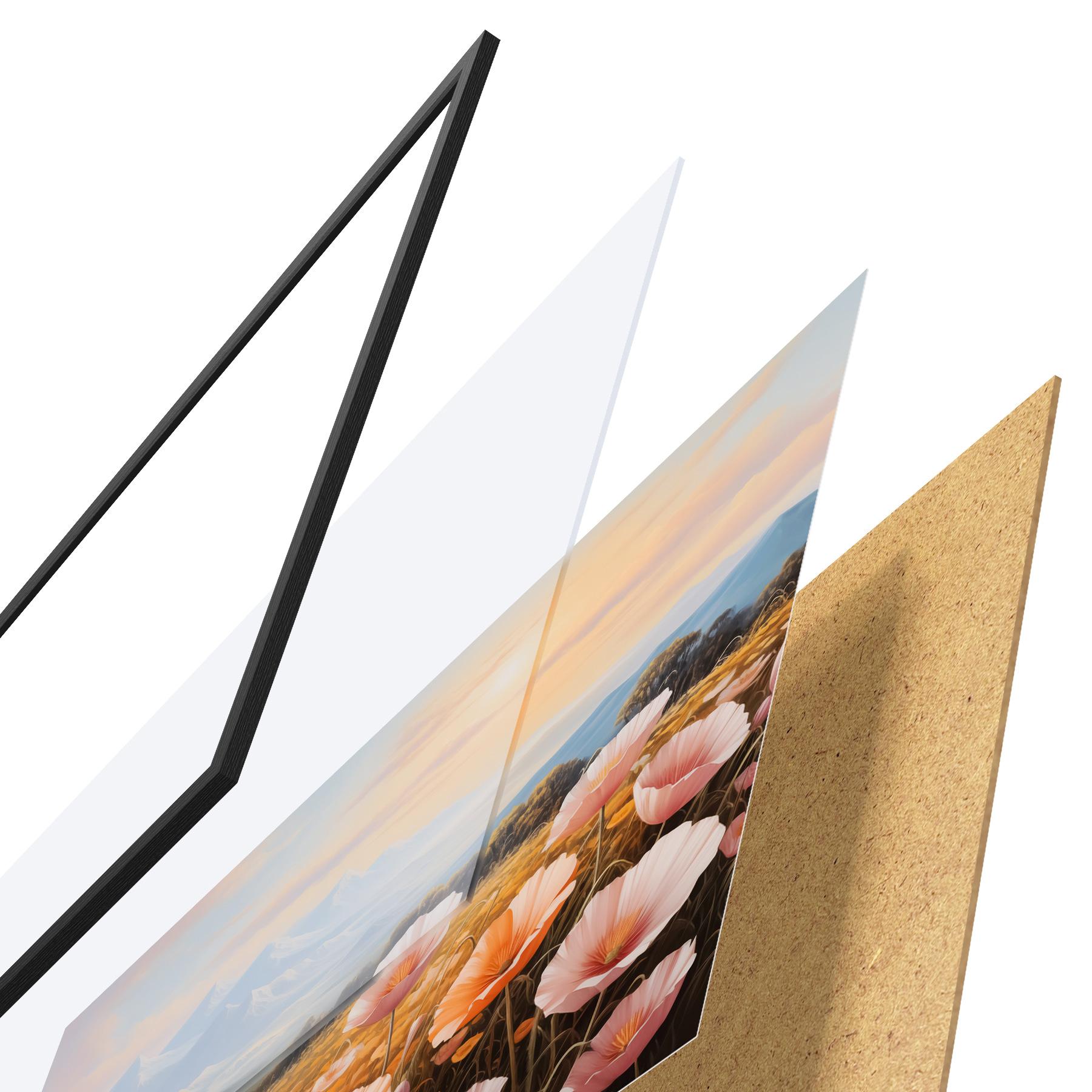 El póster consta de marco, plexiglás, imagen impresa y soporte de aglomerado. El póster puede colgarse inmediatamente en la pared gracias a los soportes de la parte posterior.