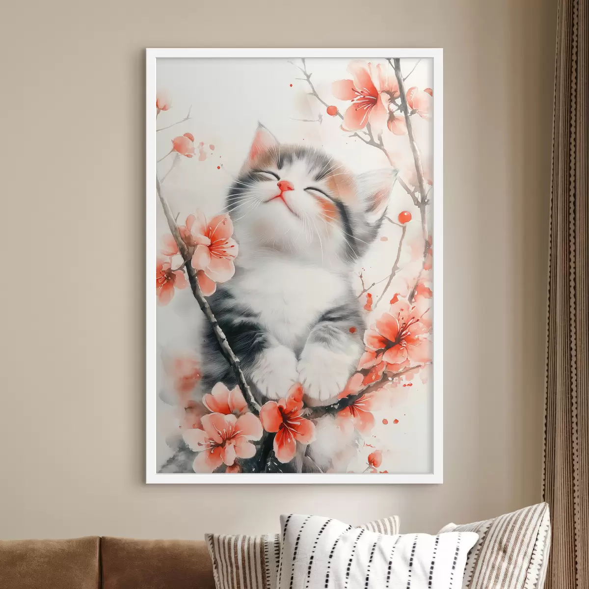 Poster Lindo gatito en una rama con flores Nr f40734