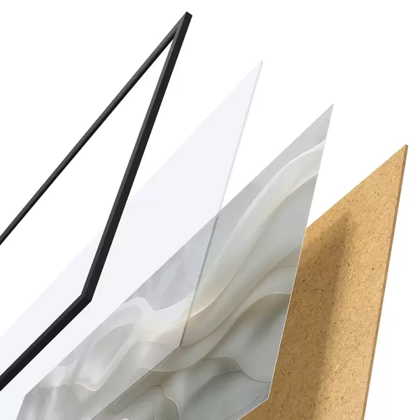 El póster consta de marco, plexiglás, imagen impresa y soporte de aglomerado. El póster puede colgarse inmediatamente en la pared gracias a los soportes de la parte posterior.