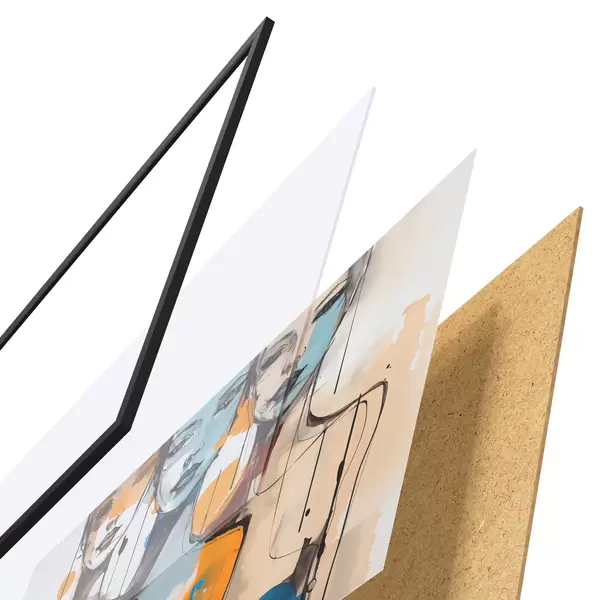 El póster consta de marco, plexiglás, imagen impresa y soporte de aglomerado. El póster puede colgarse inmediatamente en la pared gracias a los soportes de la parte posterior.