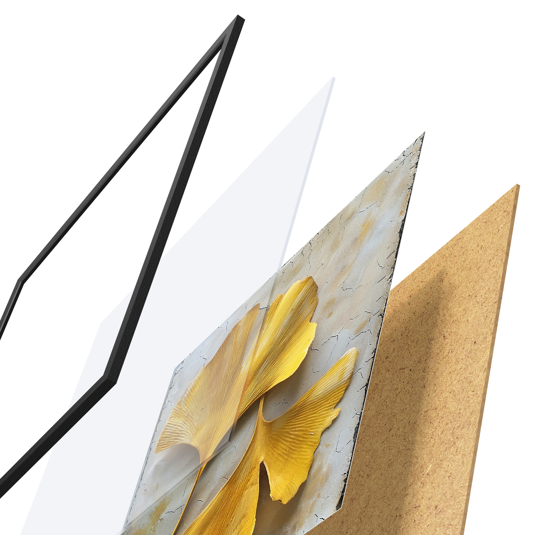 El póster consta de marco, plexiglás, imagen impresa y soporte de aglomerado. El póster puede colgarse inmediatamente en la pared gracias a los soportes de la parte posterior.