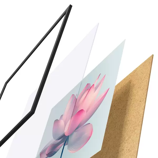 El póster consta de marco, plexiglás, imagen impresa y soporte de aglomerado. El póster puede colgarse inmediatamente en la pared gracias a los soportes de la parte posterior.