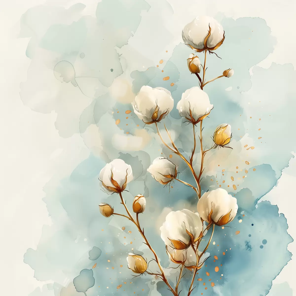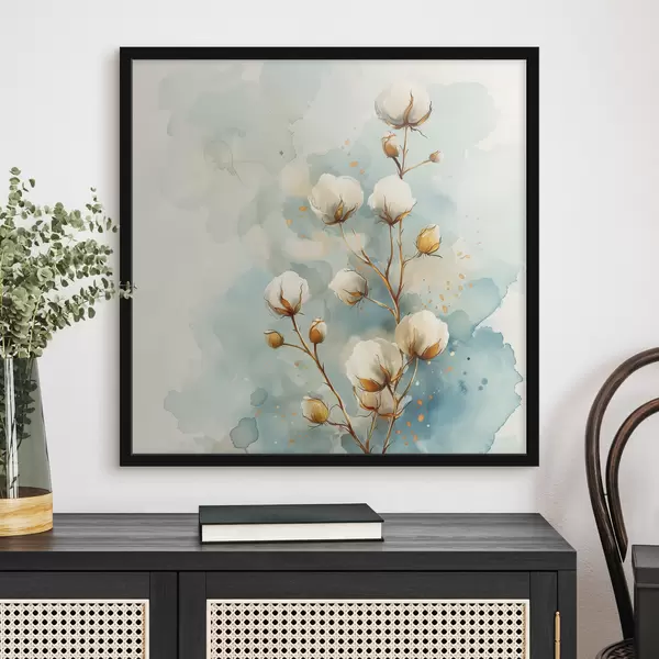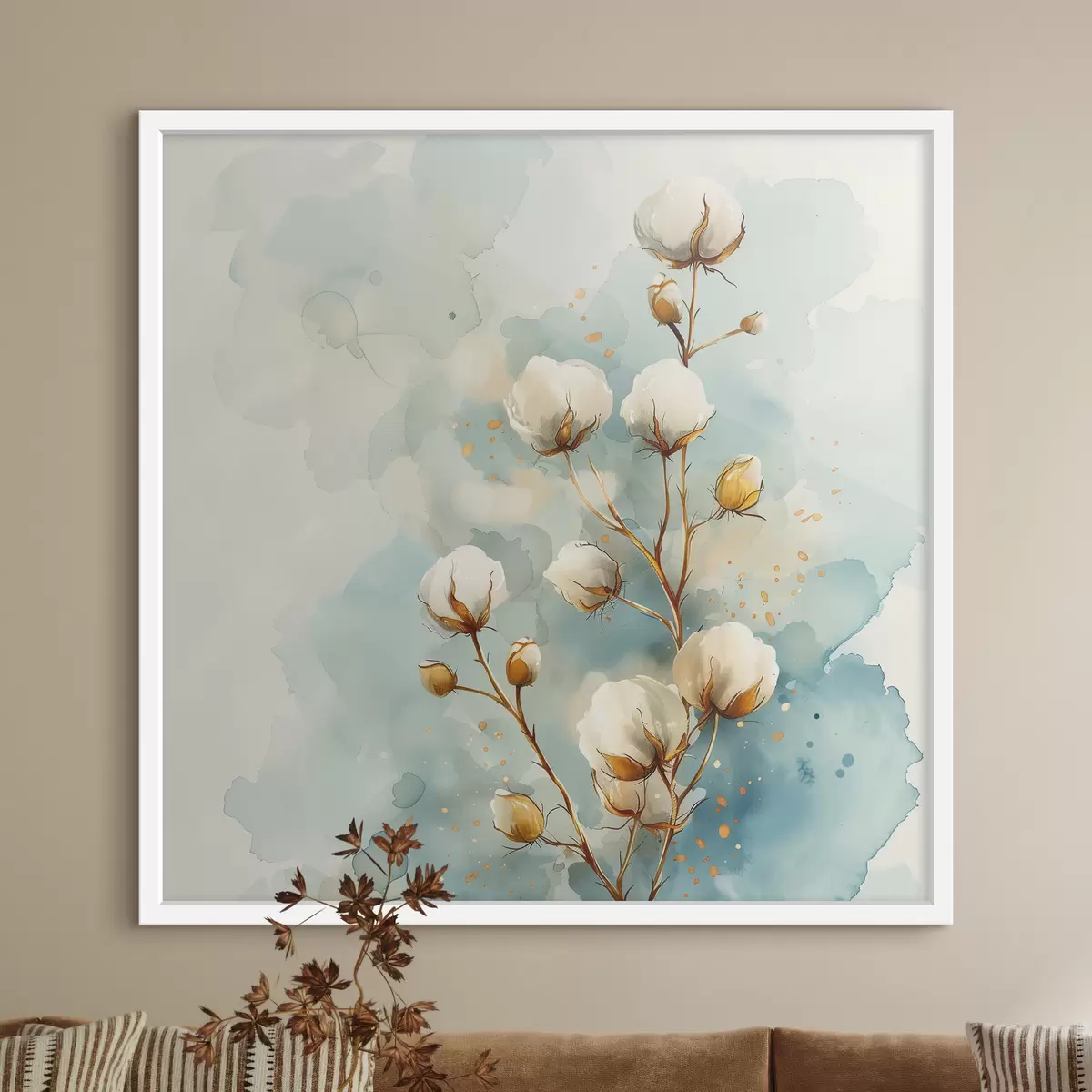 Poster Rama de algodón sobre fondo de acuarela f40780